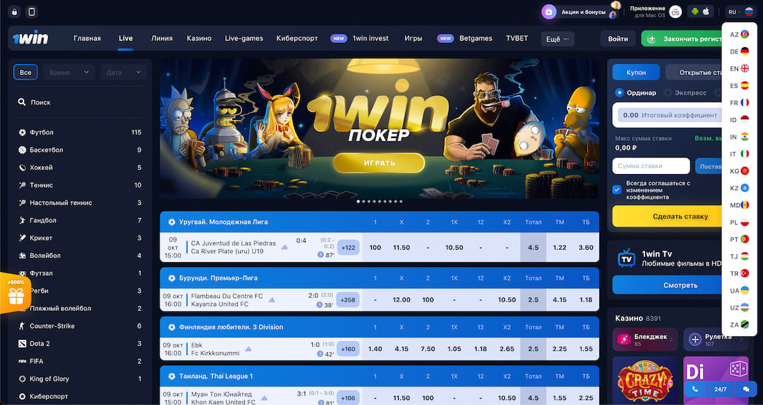 Официальный сайт 1вин — это интернет-платформа, которую делят букмекерская контора и казино. Регистрация на сайте открывает доступ к ставкам на спорт и игровым автоматам в БК.
